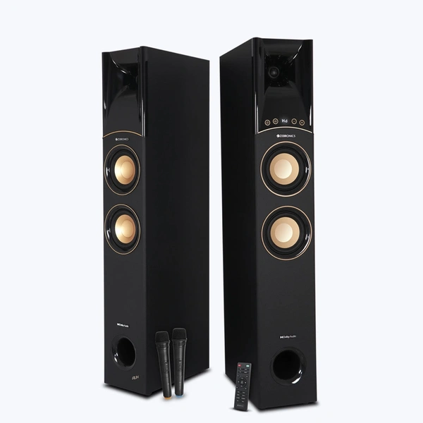 Introducing the our most advanced tower speaker yet, ZEB-Octave that brings the sound alive with Dolby Audio. The speaker comes in a 3-way speaker design, designed to create audiophile grade audio with wide sound stage. Each tower has a tweeter, dual mid-range drivers, and a large subwoofer to create a perfect melody across the frequency range. Karaoke to your favourite jams as the speaker has dual wireless mics so you can make life memories. It has an Advanced amplifier circuit with 340w RMS of output power and more.