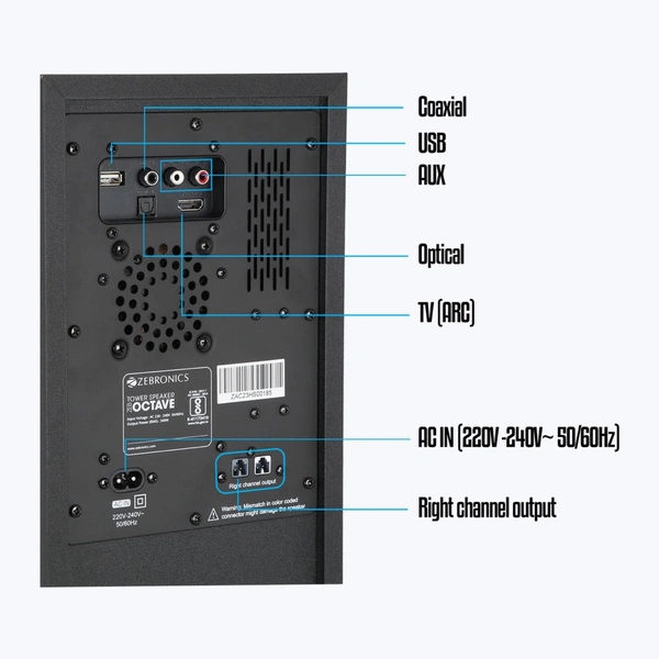 The tower speaker comes with a plethora of connectivity options. You can connect your TV, DTH etc with TV(ARC) or optical input. It supports coaxial as well as aux input. A pen drive can be used to play songs. Also equipped with wireless BT for devices like smartphones, tablets, laptops etc. |