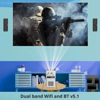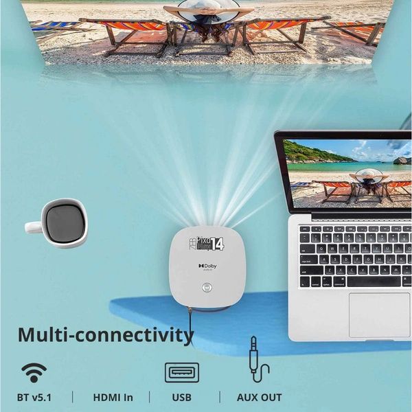 The projector comes with built-in dual band 2.4GHz and 5GHz Wi-Fi to let you stream content directly on the projector without the hassle of connecting to any other source device. You can also connect a speaker wirelessly, with the help of BT v5.1. It also has 8GB in-built storage. |