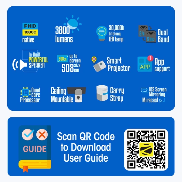 The smart LED projector comes packed with technology for crystal clear picture quality with 3800 lumens brightness. It ensures that the content looks stunning and bright. |