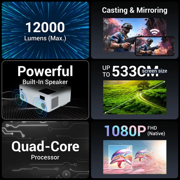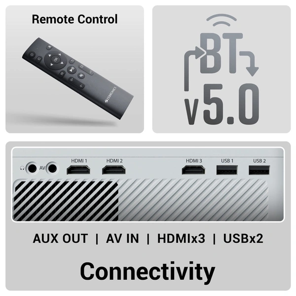 | Package Contents: | Projector - 1 U, Remote Control - 1 U, Power Cord - 1 U, HDMI Cable - 1 U, Cleaning cloth - 1 U, QR code guide - 1 U |