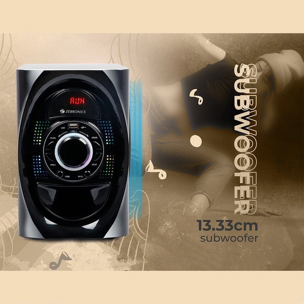 The 5.1 speaker gives a thumping bass with its powerful 13.33cm subwoofer to add life to your music. |