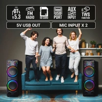 - Wireless BT v5.3 / USB / mSD / FM / AUX / Mic Input x 2